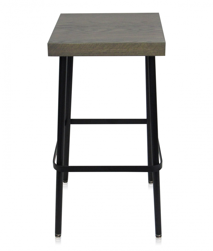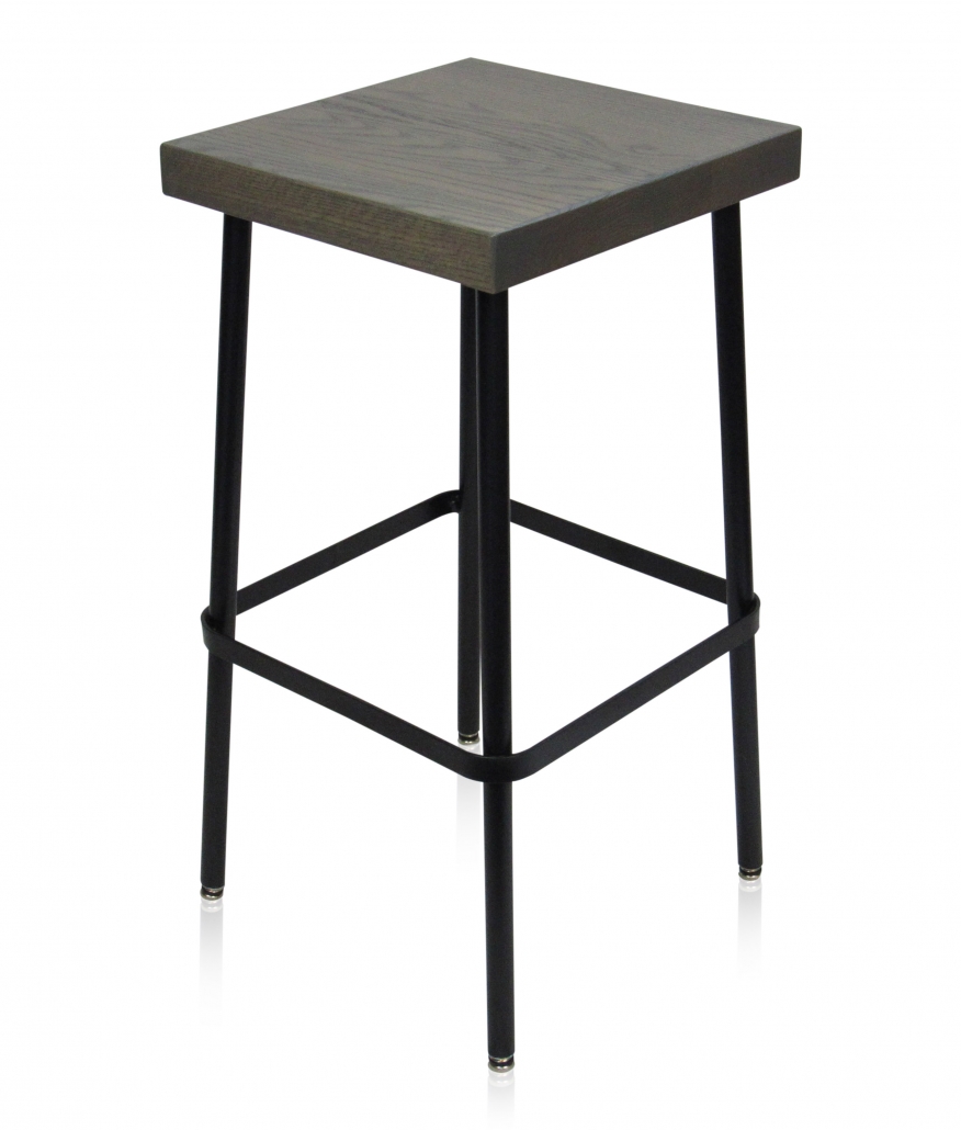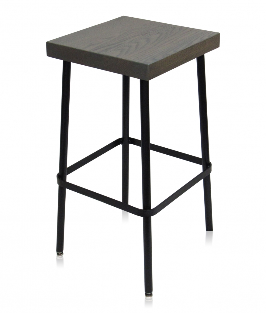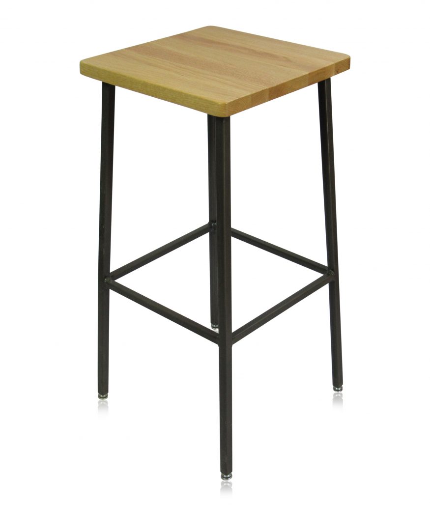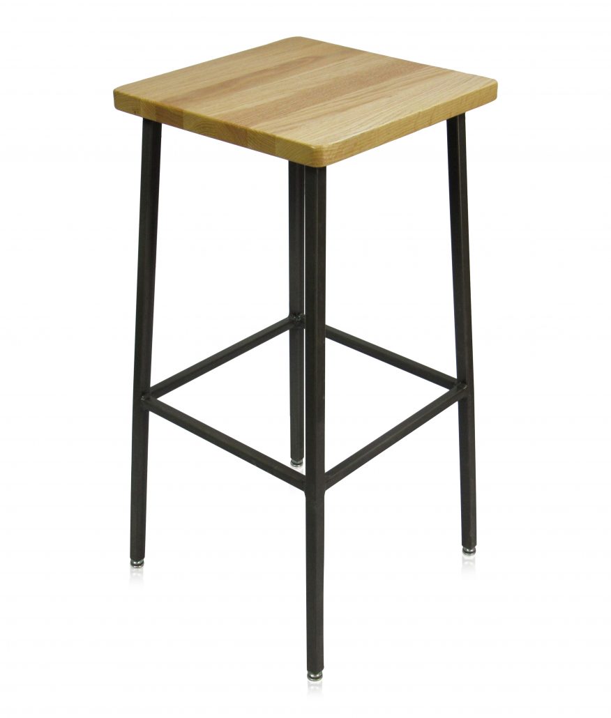 This simple metal barstool offers a wood seat and is perfect for a variety of applications, including bars, food courts, and casual dining.